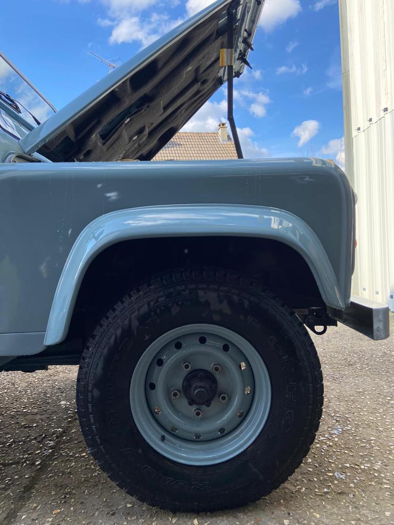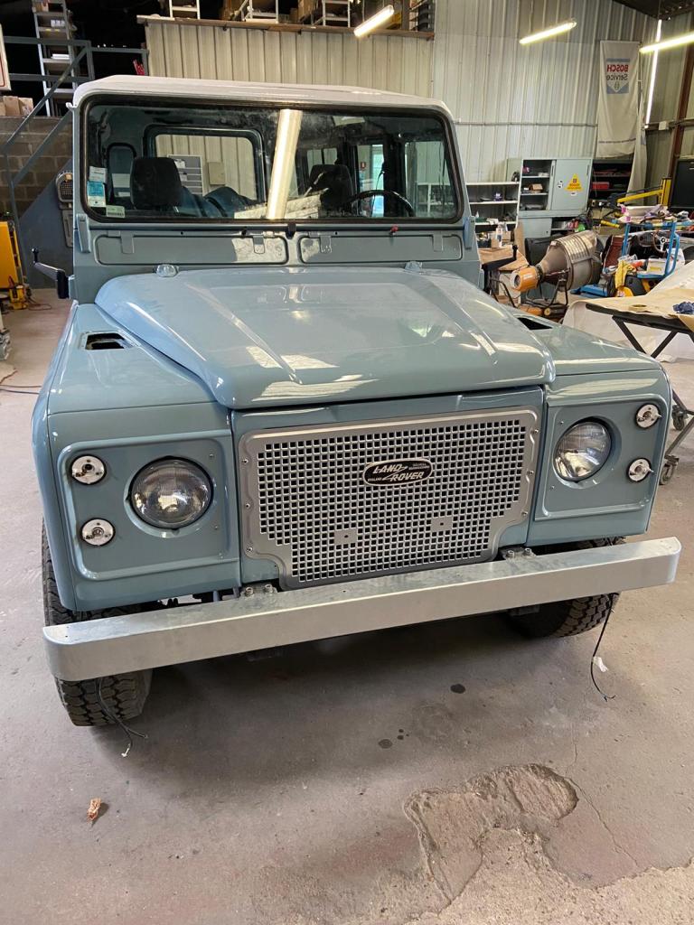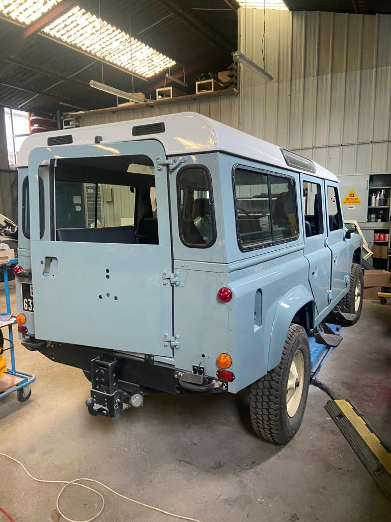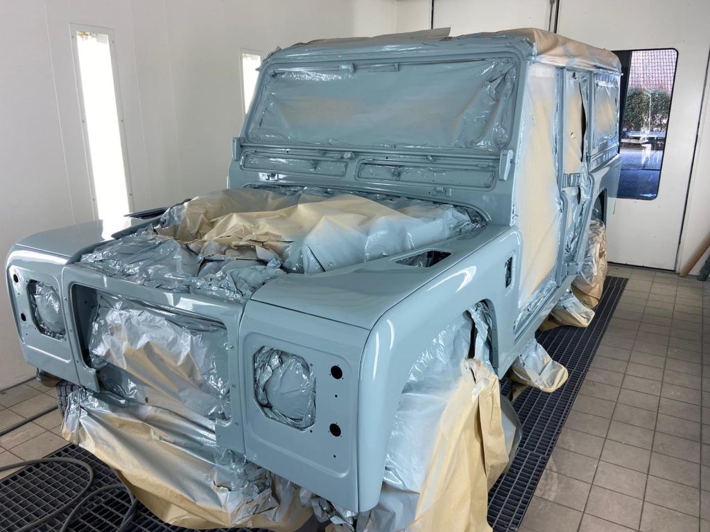Reprise de corrosion et peinture complète avec changement de teinte d’un Land Rover Defender.